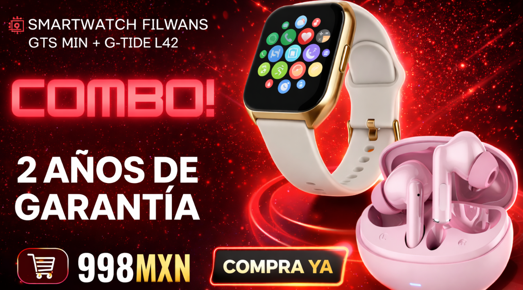 Smartwatch Filwans GTS Mini + Audífonos Inalámbricos G-TIDE L42 Doble Conectividad y Sonido Premium