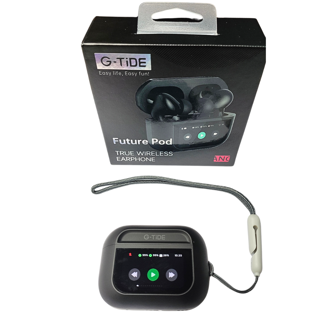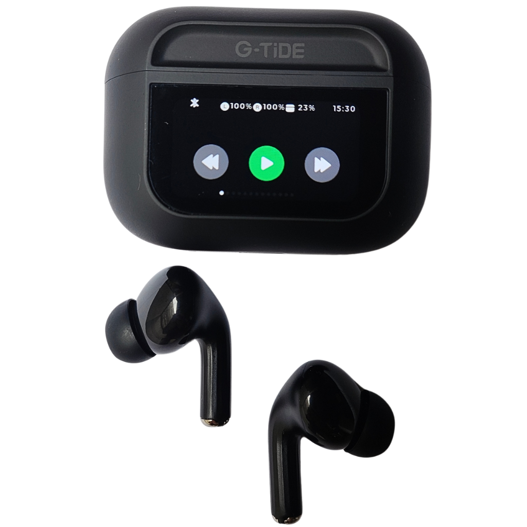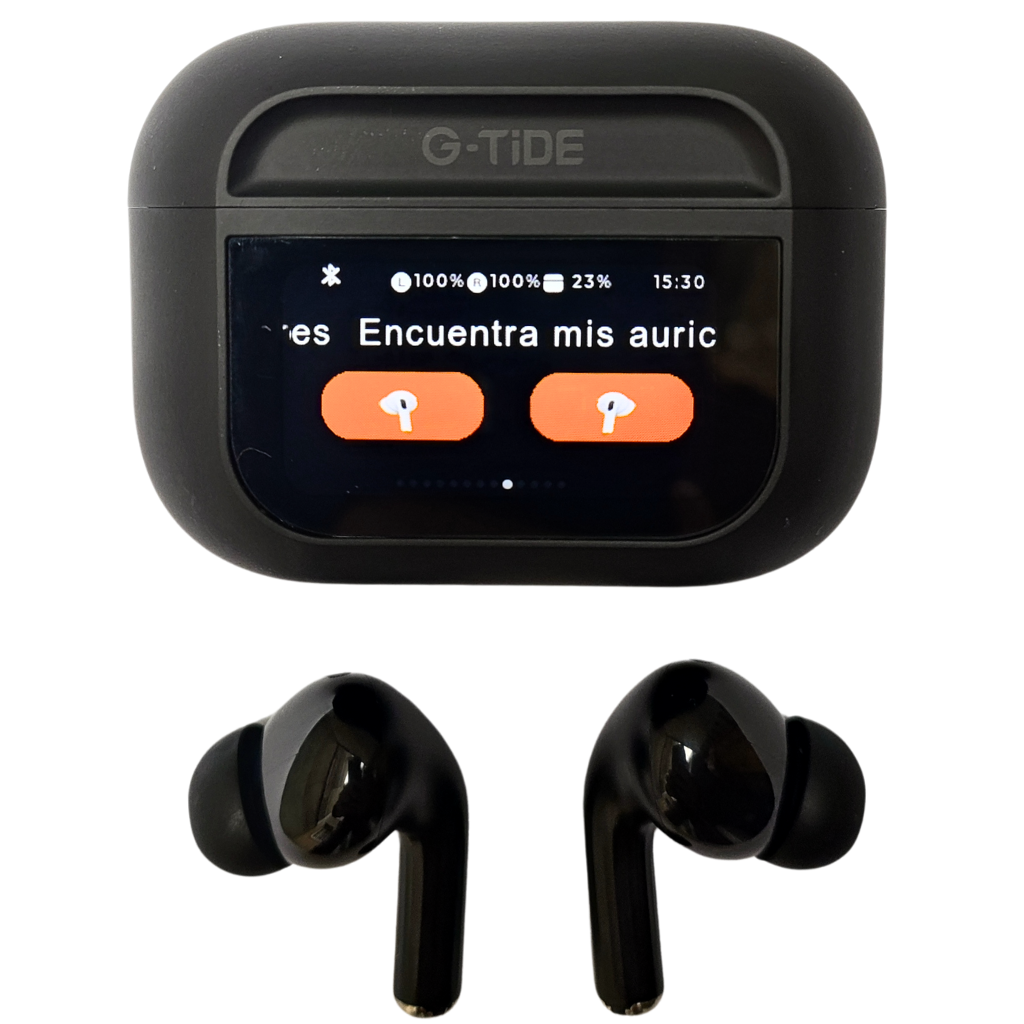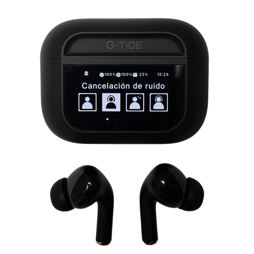 Audífonos con Pantalla Táctil. G-TIDE Future Pod, Bluetooth, Cancelación de ruido, encontrar audífonos