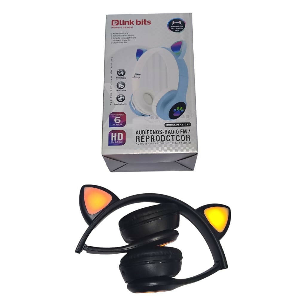 Audífonos Gatica Bluetooth, luces led, Radio FM, diadema plegables