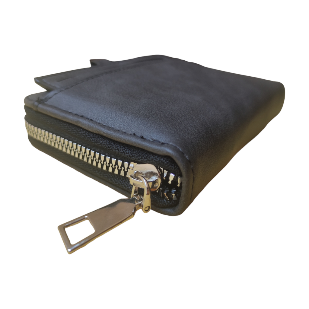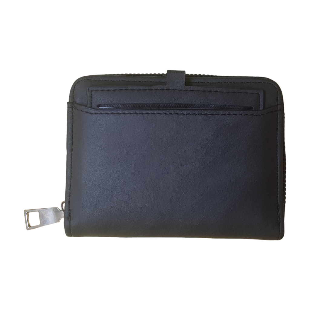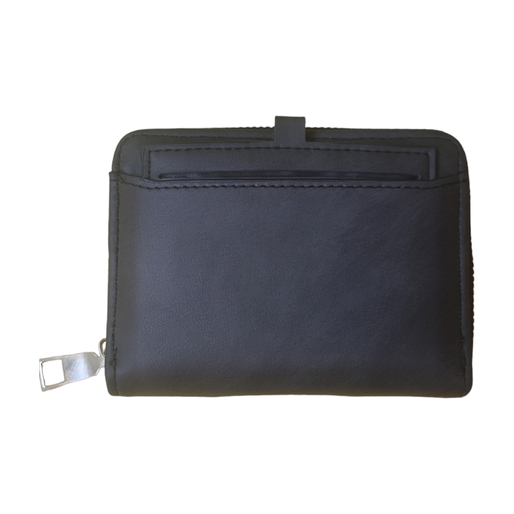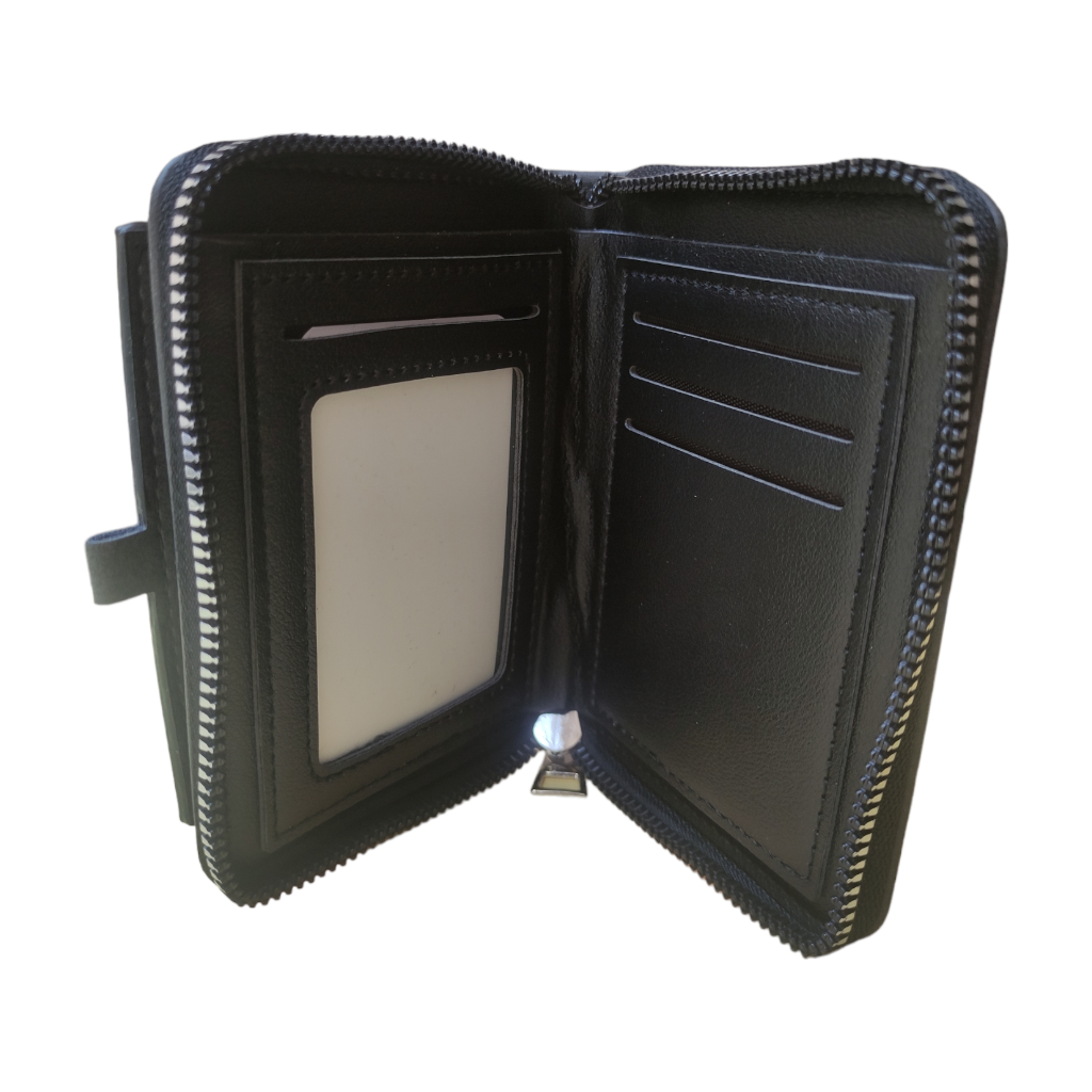 Organice sus finanzas con estilo con esta billetera para caballero con cierre exterior.Dispone de un compartimiento compacto para billetes, múltiples ranuras para tarjetas y un tarjetero extraíble para mayor adaptabilidad. Negra y elegante, esta billetera ofrece una solución completa para sus finanzas diarias.