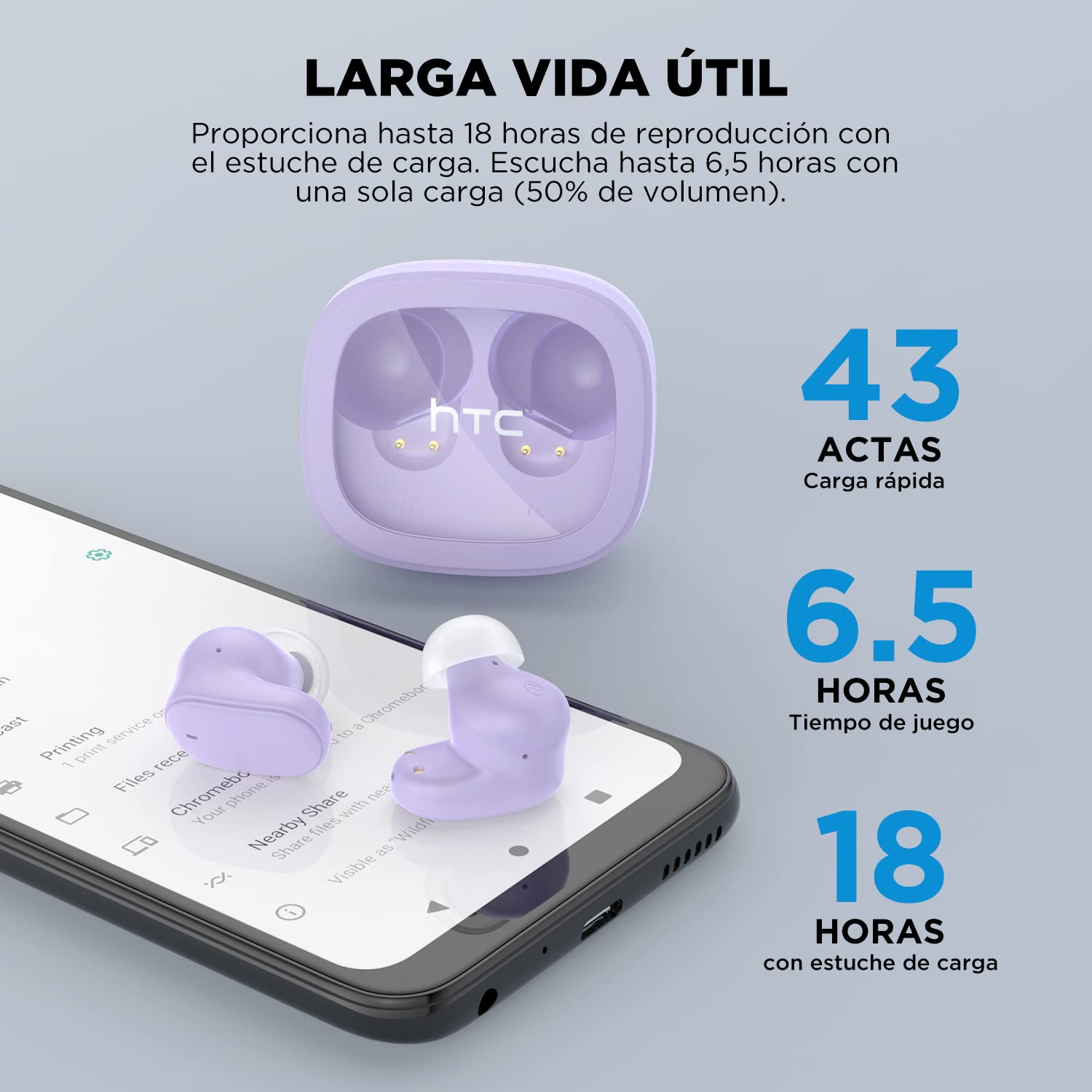 - Los audífonos inalámbricos HTC TWS9 poseen un altavoz loundspeaker de φ10mm, unidad de bobina móvil de alta fidelidad y junto con la bendición de la codificación de audio de alta definición AAC/SBC, los graves son delicados, los agudos surgen y los detalles de sonido son ricos, para que pueda disfrutar del timbre puro de alta definición a través de nuestros true wireless earbuds BDA09.