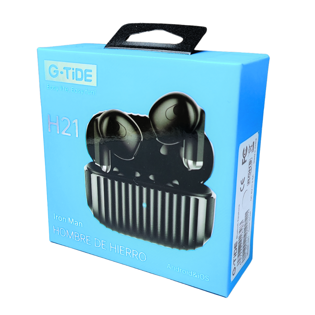 Audífonos Bluetooth G-Tide H21: Estilo y Sonido de Alta Calidad Disfruta de una conexión inalámbrica estable con Bluetooth 5.3 y control táctil. La tecnología de cancelación de ruido reduce el sonido ambiente, mientras que su estuche metálico añade elegancia. La batería de 250 mAh ofrece hasta 5 horas de reproducción y una carga rápida de 1 hora.