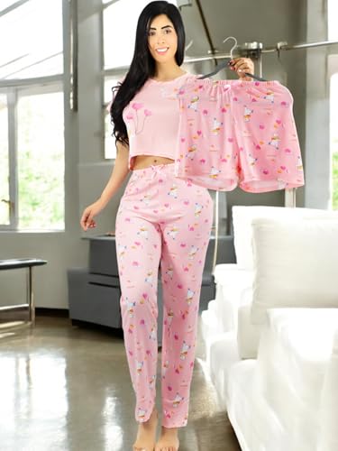 Pijama De 3 Piezas Mujer Pantalon Short Y Playera A Juego