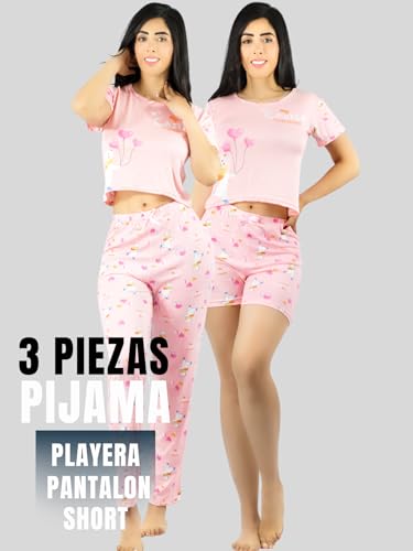 Pijama De 3 Piezas Mujer Pantalon Short Y Playera A Juego