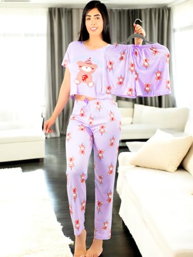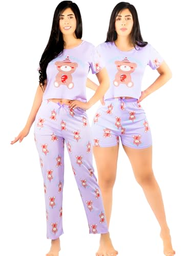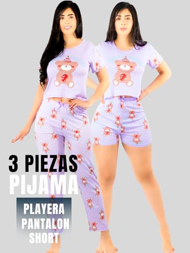 Pijama De 3 Piezas Mujer Pantalon Short Y Playera A Juego