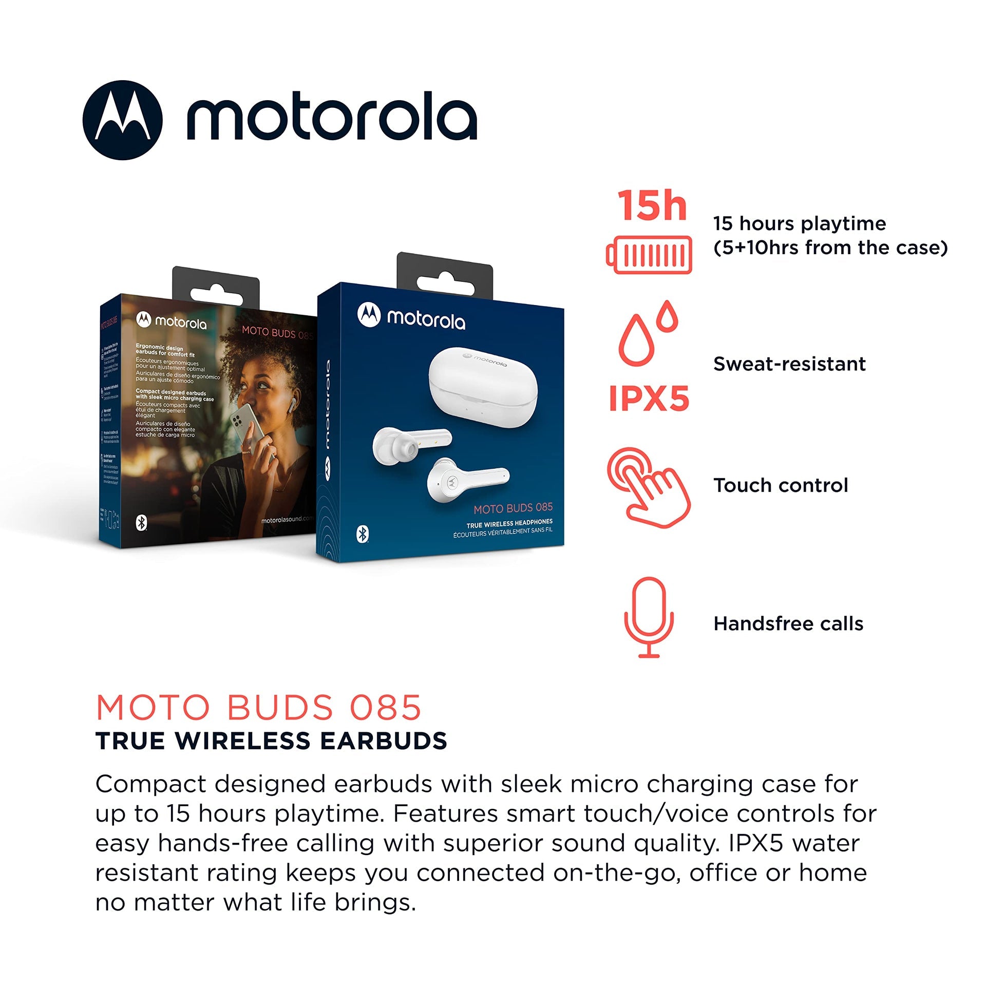 Los Motorola Moto Buds 085 son el compañero perfecto para el trabajo, la escuela o cualquier actividad diaria, ofreciendo una combinación de sonido claro, comodidad y resistencia en un paquete compacto.