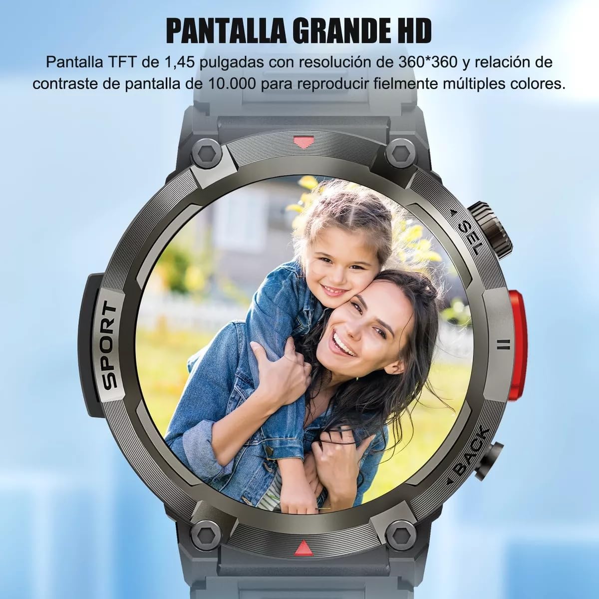 - ⌚【Pantalla HD de 1,45"】: El reloj inteligente adopta una pantalla a color HD de 1,45 pulgadas, alta resolución de 360 x 360, equipada con una pantalla redonda completamente táctil y una correa de cuero, que le brinda una visión clara y una experiencia de uso cómoda Inteligente El reloj también tiene una función de esfera de reloj personalizada, puede cargar sus imágenes favoritas para personalizar la esfera de su reloj.