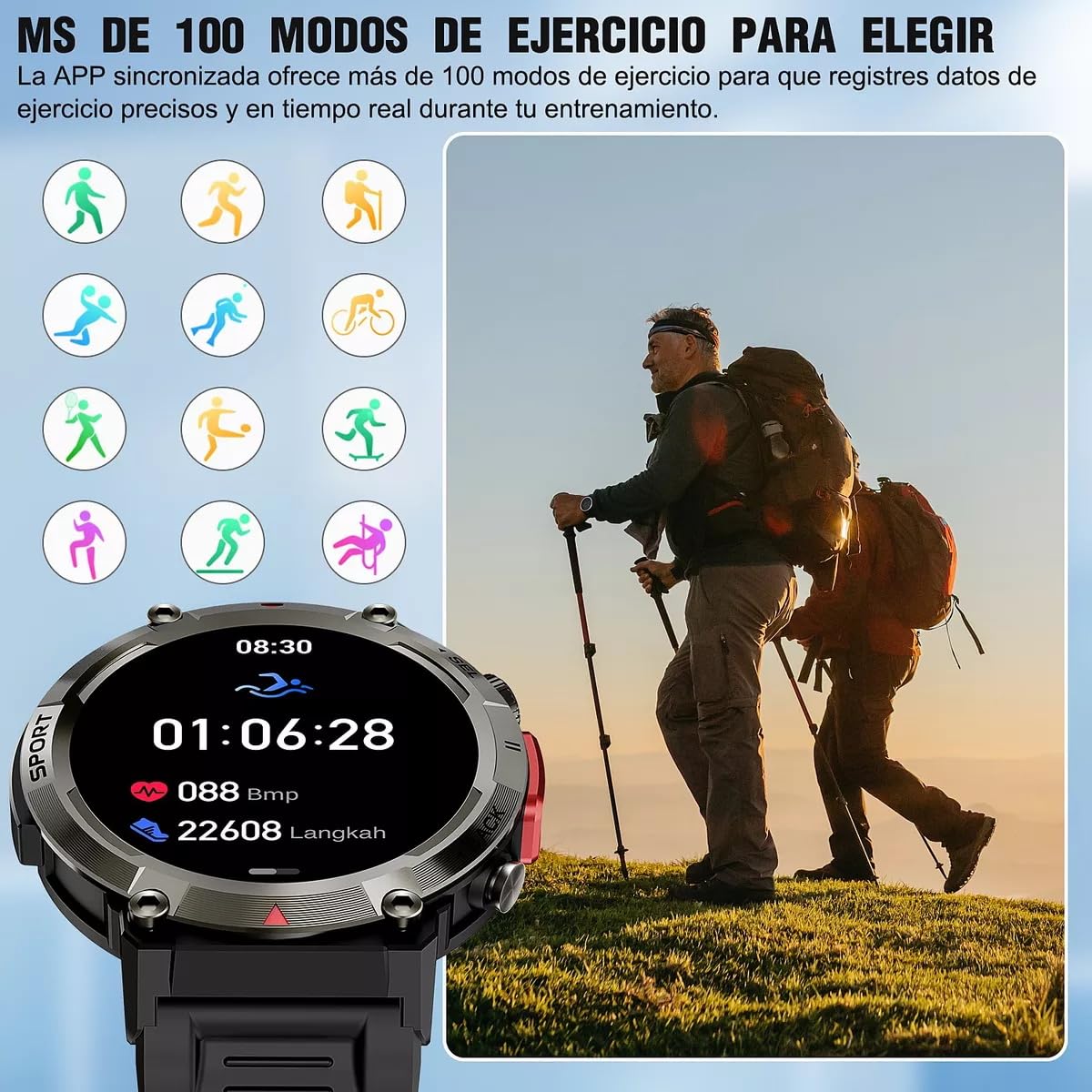 - 🏊【Su Asistente Deportivo】 El reloj inteligente admite una variedad de modos deportivos, como correr, nadar, andar en bicicleta, baloncesto, etc., y puede registrar los pasos de su ejercicio, las calorías quemadas, la distancia, el tiempo y otros datos. Además, 3ATM la función impermeable IP68 te permite usarlo mientras te lavas las manos. (La resistencia al agua disminuirá con el uso diario. No se recomienda usarlo al tomar baños calientes o bucear profundamente.)